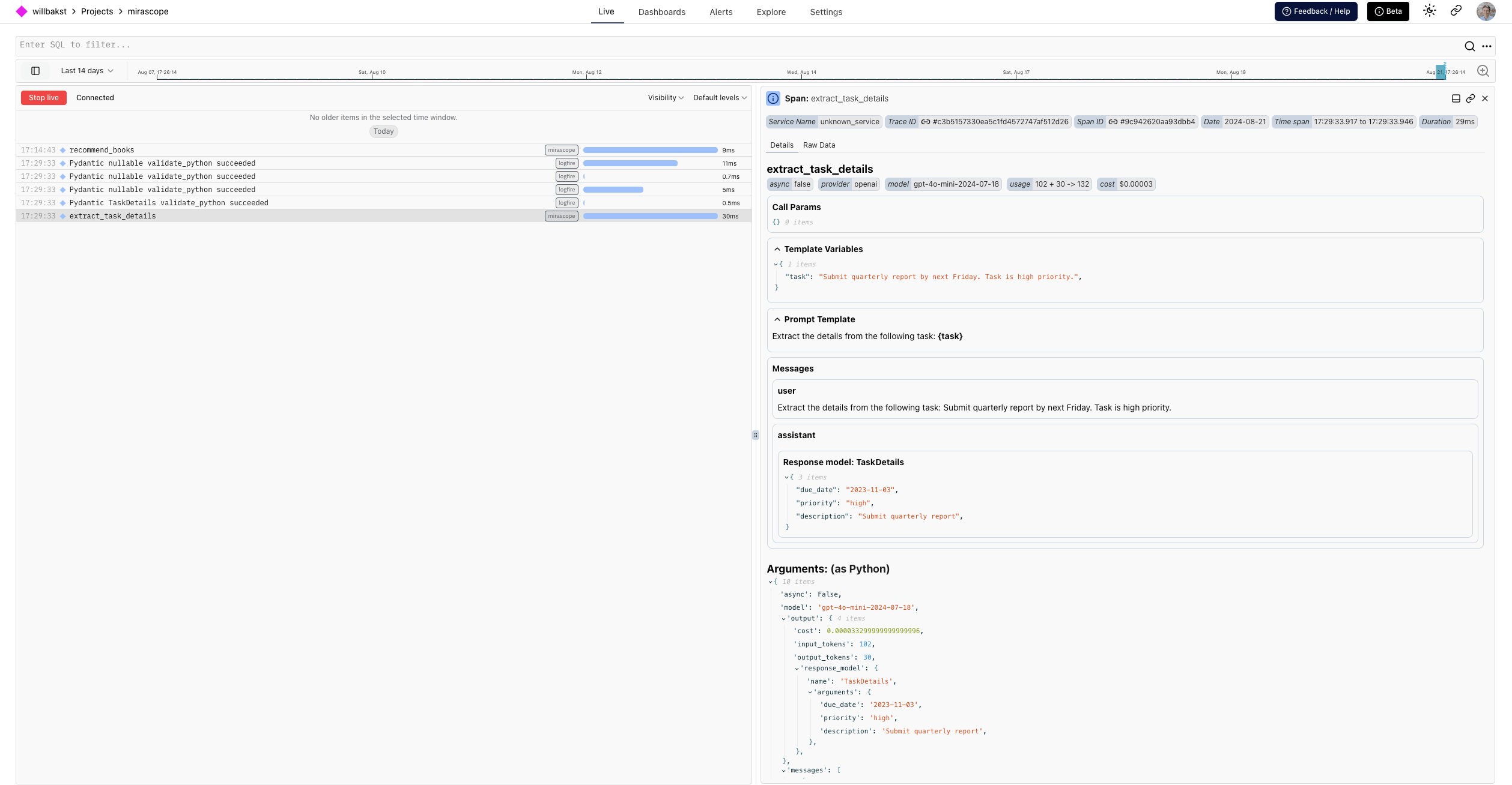 task_details = extract_task_details(task) # this will be logged automatically with logfire